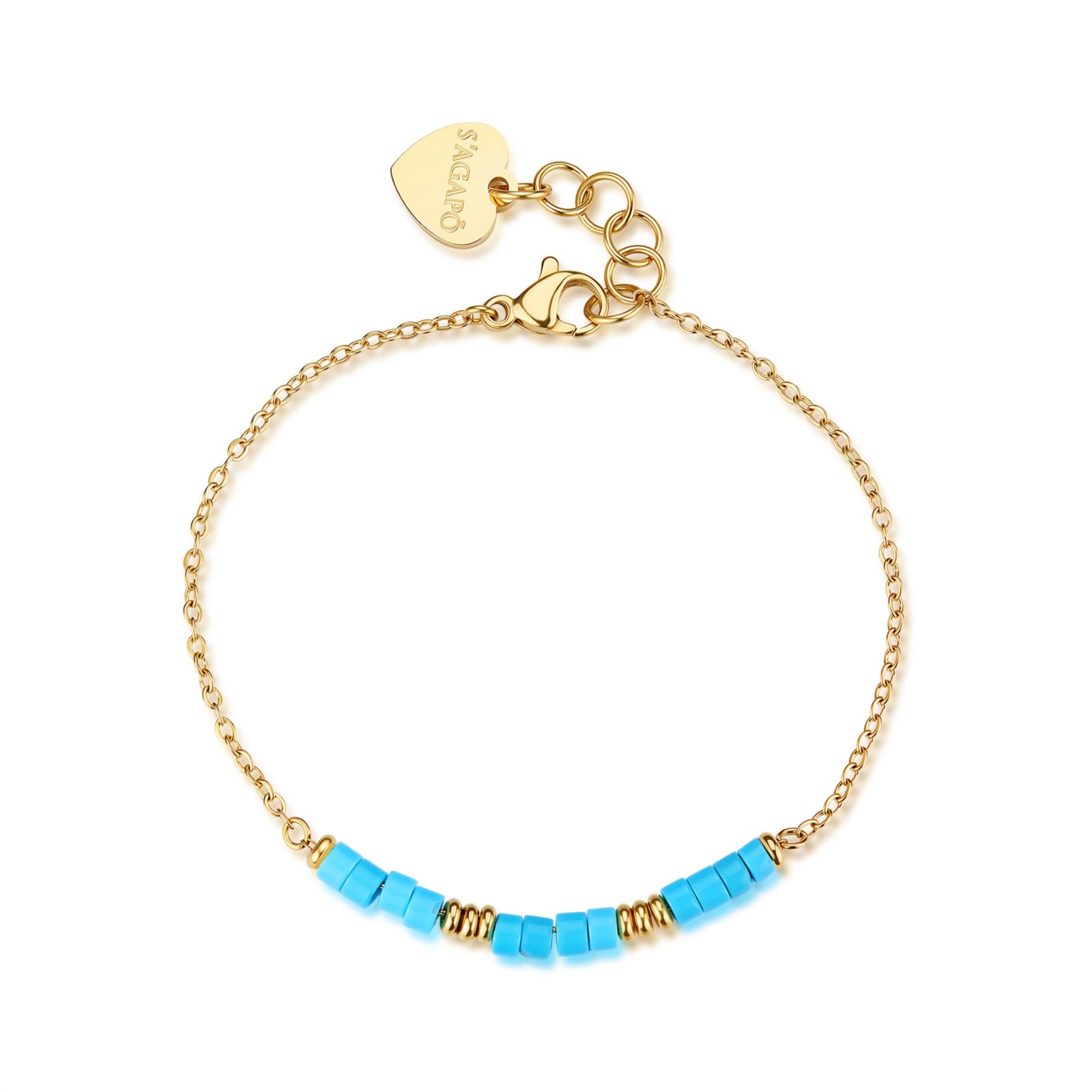 Bracciale donna s'agapo, SGI37, collezione glint, in acciaio 316L e finitura pvd oro 14K e turchese ricostruito, misura 18, 5cm
