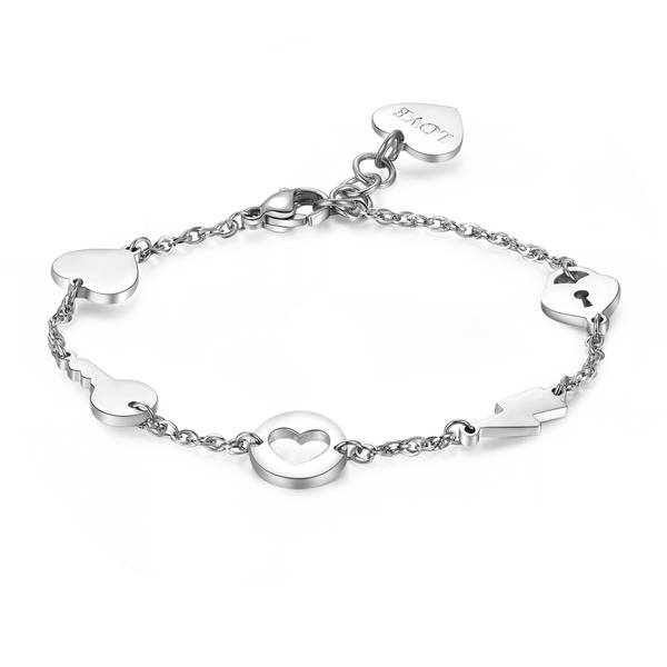 Bracciale donna s'agapò, Shd11, collezione hidden, in acciaio, pendente cuore, chiave e saetta, lunghezza 18, 5mm