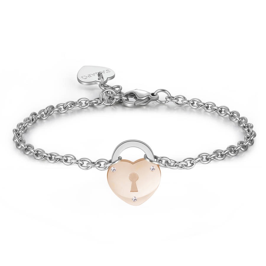 Bracciale donna sagapò, Slm12, collezione lockme, in acciaio con cuore a forma di lucchetto rosato con incisione nel retro "la migliore mamma del mondo è la mia"