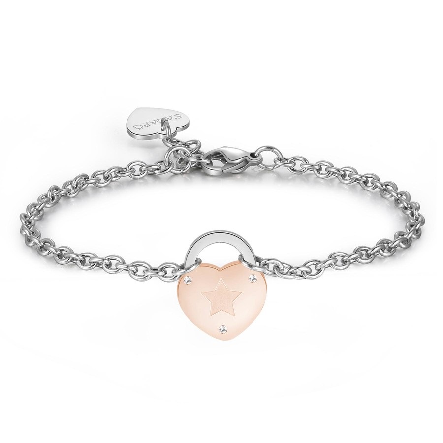 Bracciale donna sagapò, Slm13, collezione lockme, in acciaio con cuore a forma di lucchetto oro rosa e incisione sul retro “L'amicizia non è una grande cosa...ma un milione di piccole cose”.