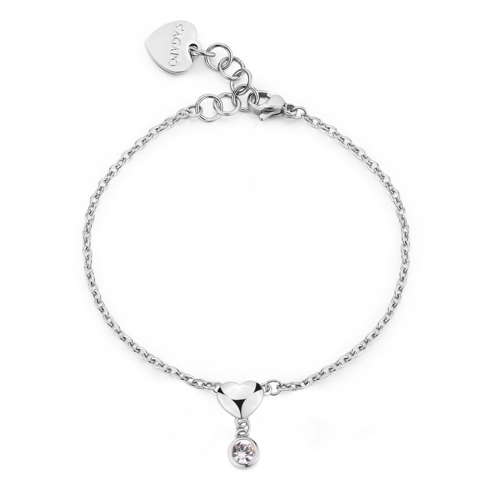 Bracciale donna s'agapo, SCE44, collezione luce, in acciaio 316L con centrale a forma di cuore e cristallo, lunghezza 18, 5cm