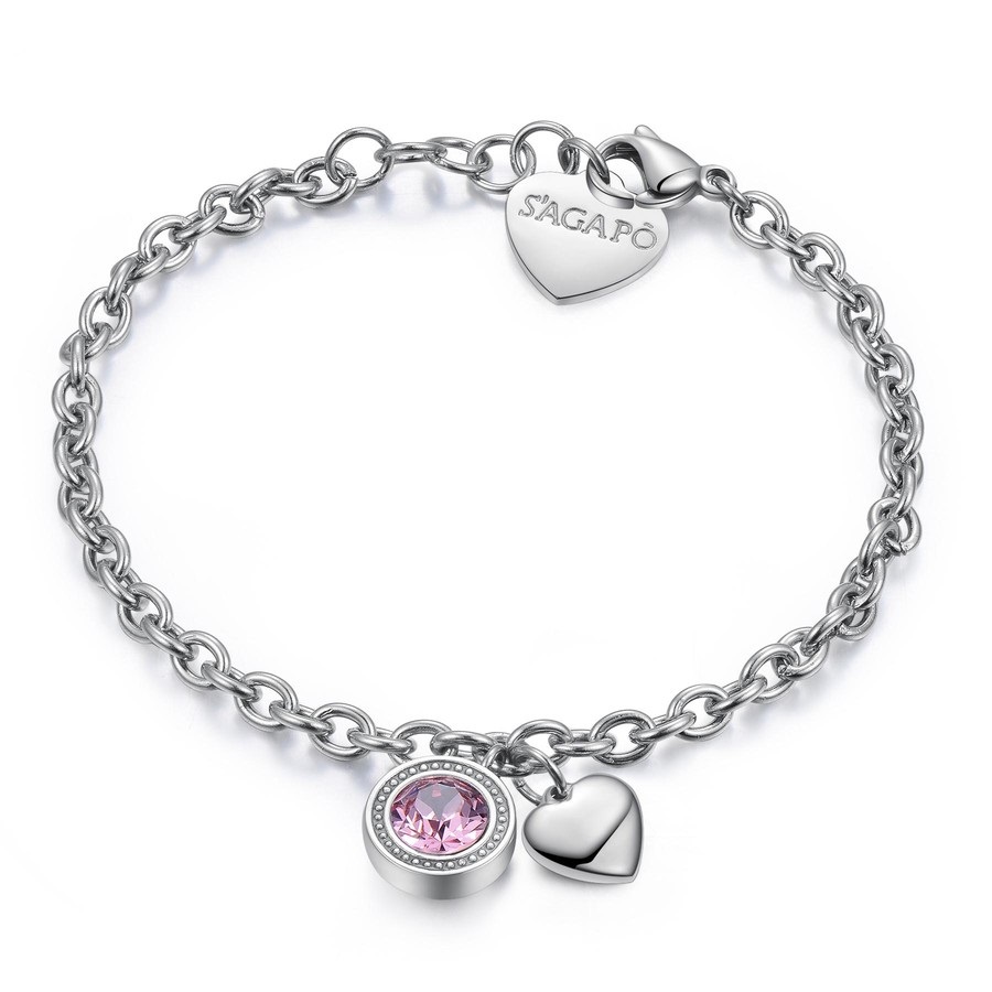 Bracciale donna sagapò, SKT11, collezione lucky light, in acciaio con cristallo swarovski, pendente forma cuore