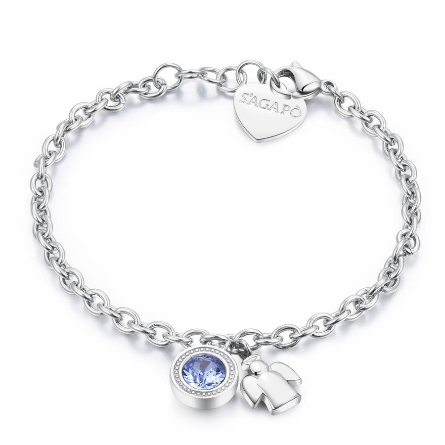 Bracciale donna sagapò, Skt13, collezione Lucky Light, in acciaio con swarovski e angelo