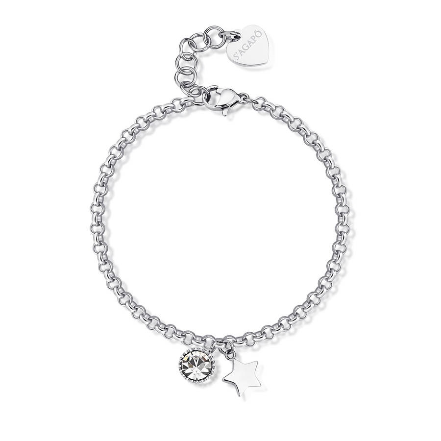 Bracciale donna s'agapo, SKT27, collezione lucky light, in acciaio con cristalli, lunghezza 19cm