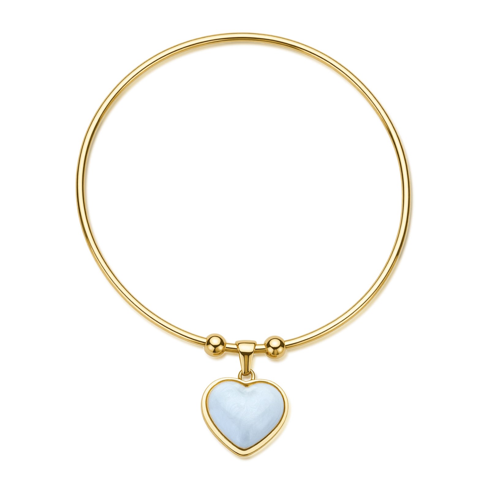 Bracciale donna s'agapo, SDM14, collezione madame, in acciaio 316L e finitura pvd oro 14K con pendente a cuore e smalto bianco perla, diametro 65mm