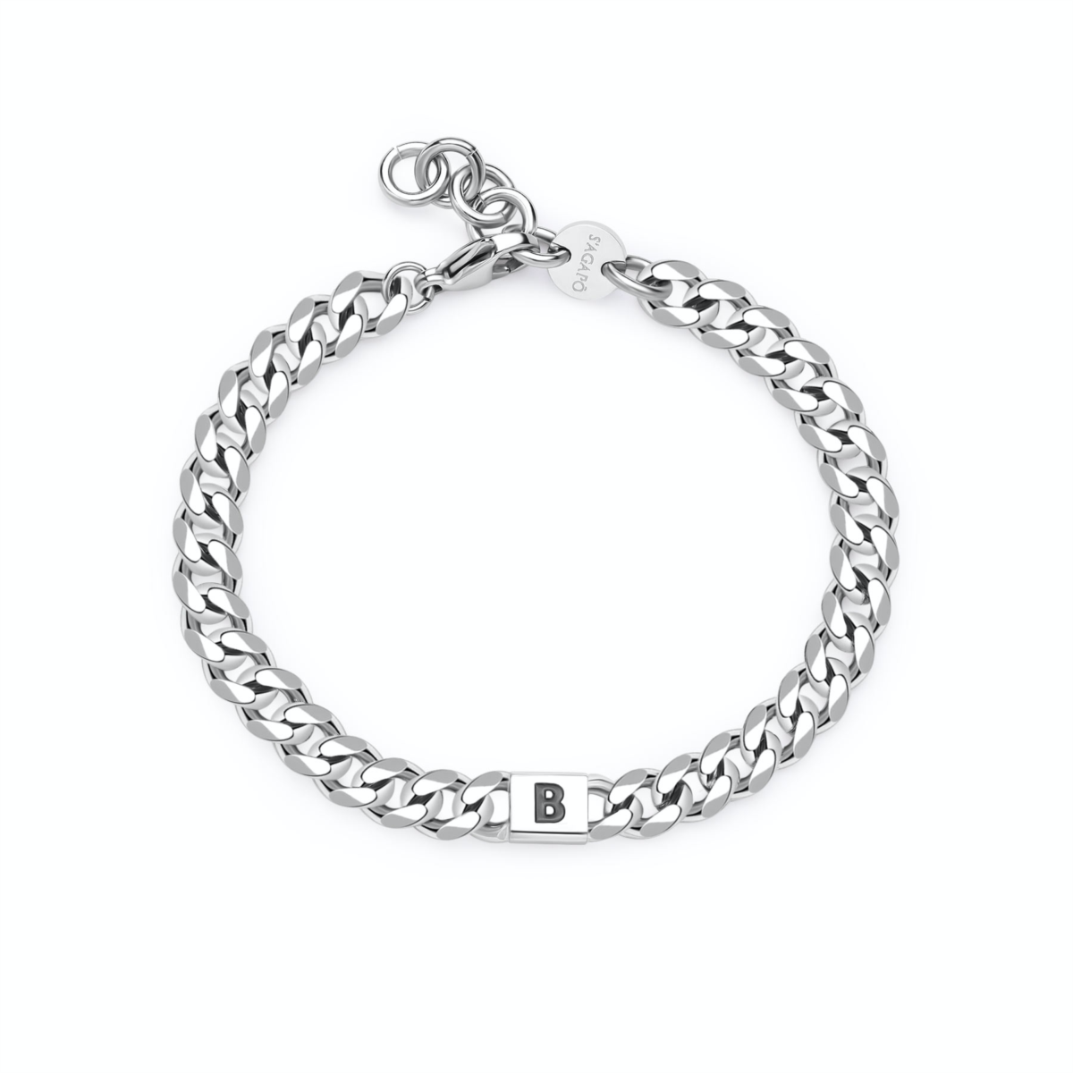Bracciale uomo sagapò, SMG12, collezione monogram, in acciaio con iniziale B, misura 21cm