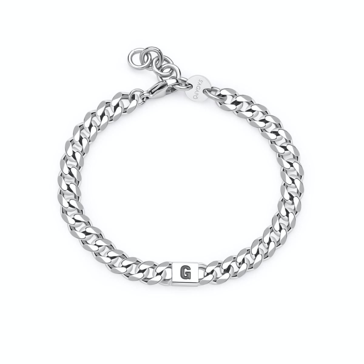 Bracciale uomo sagapò, SMG17, collezione monogram, in acciaio con iniziale G, misura 21cm