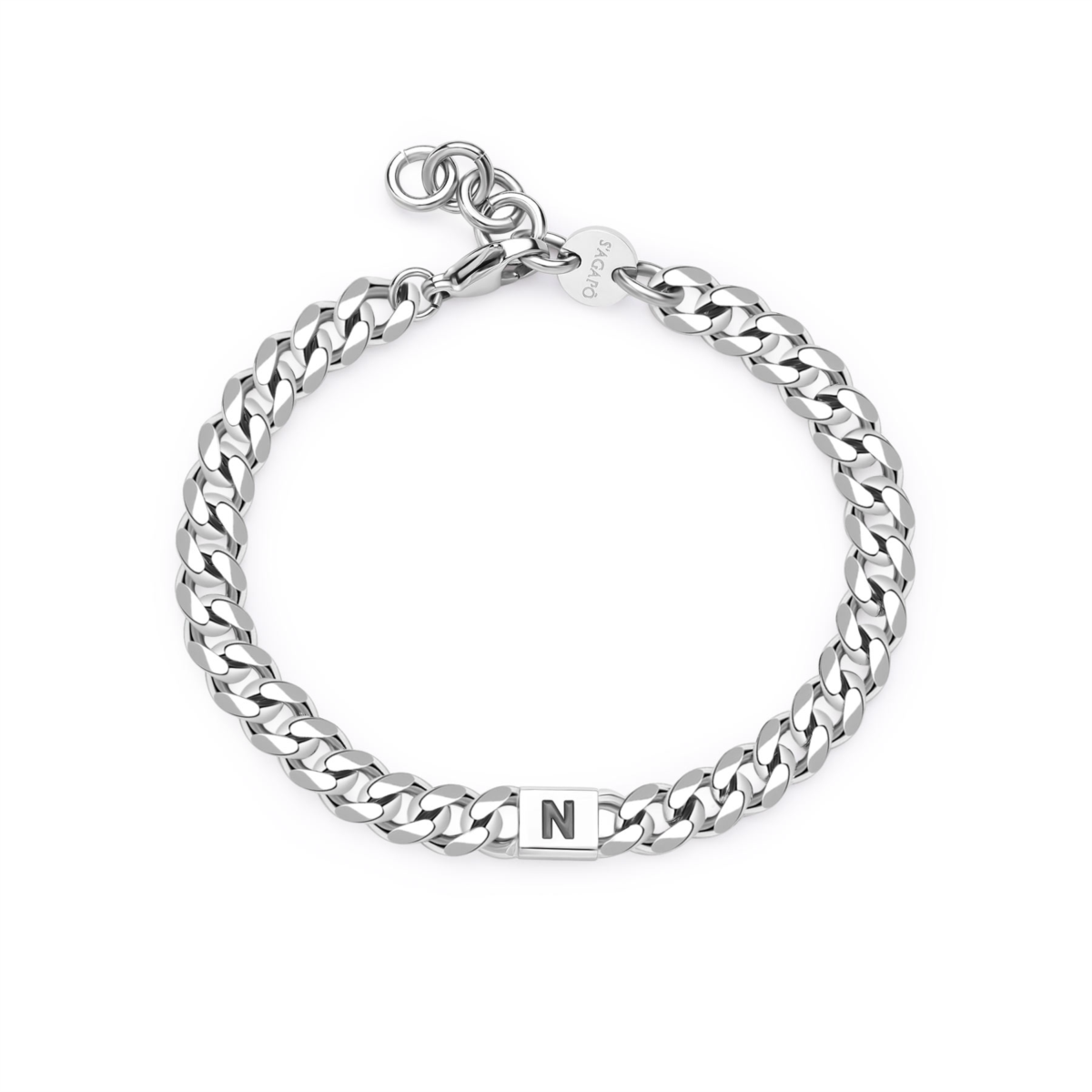 Bracciale uomo s'agapo, SMG24, collezione monogram, in acciaio 316L con centrale con lettera N e smalto nero, lunghezza 21cm