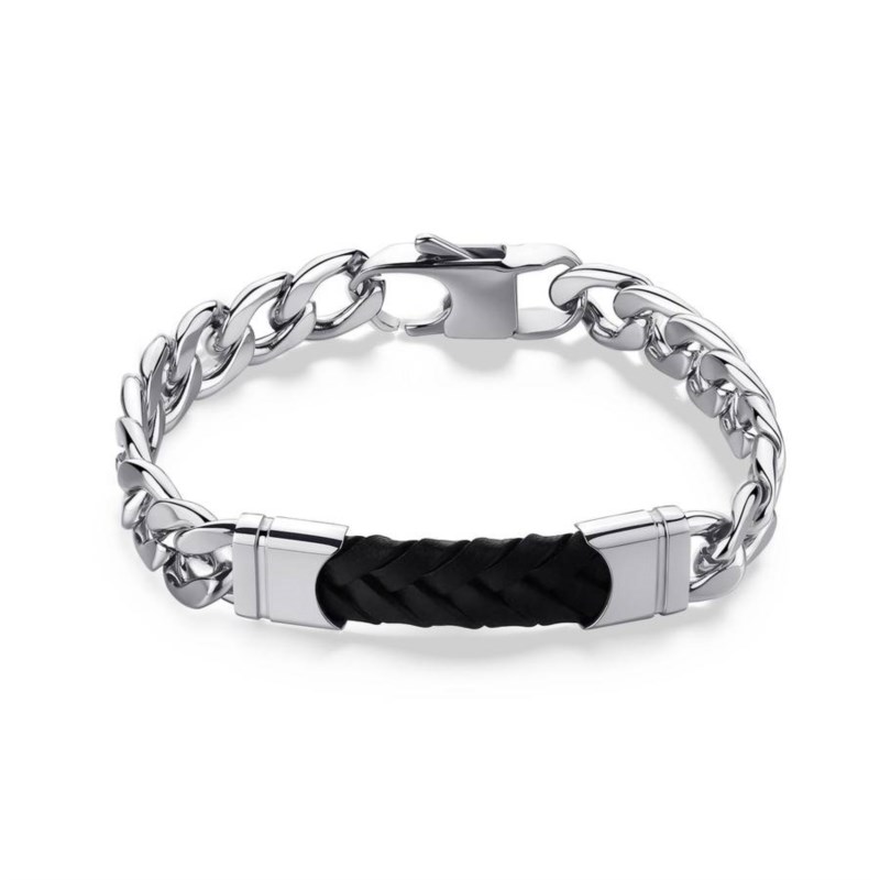 Bracciale uomo s'agapo, SKR16, collezione parkour, in acciaio con pelle nera, lunghezza 20cm