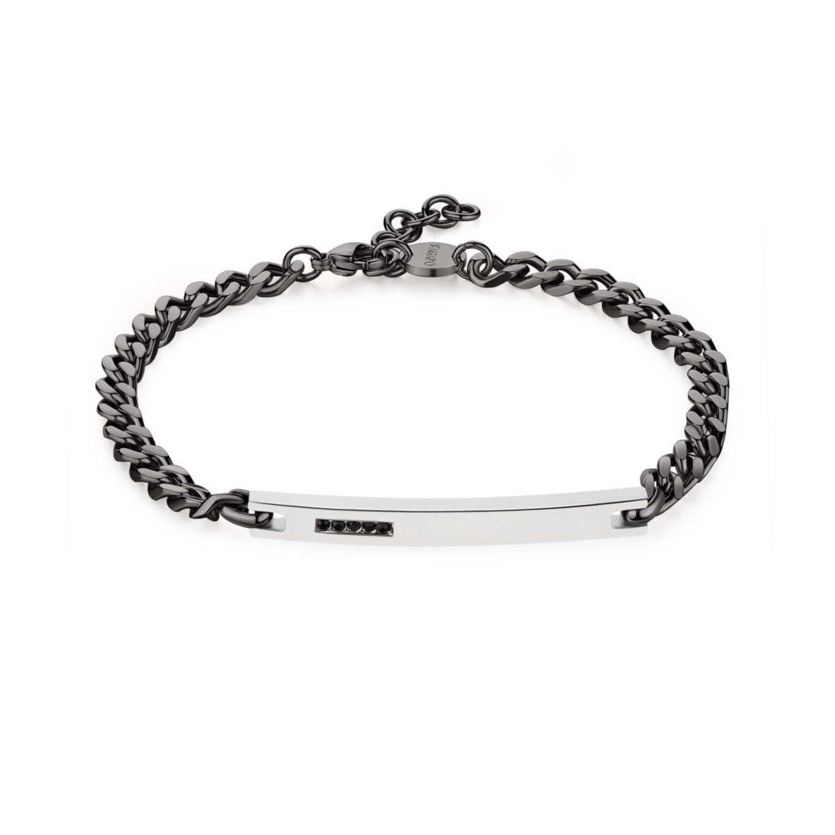 Bracciale uomo s'agapo, SPD24, collezione proud, in acciaio 316L con catena in finitura pvd colore rutenio e centrale con cristalli neri, lunghezza 22cm