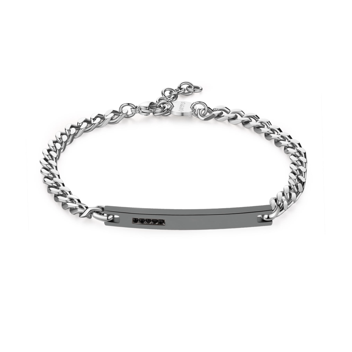 Bracciale uomo s'agapo, SPD25, collezione proud, in acciaio 316L con catena e centrale in finitura pvd colore rutenio e cristalli neri, lunghezza 22cm