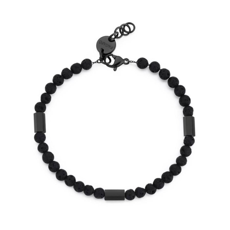 Bracciale uomo s'agapo, SRT14, collezione riot, in acciaio nero con pietre, lunghezza 21cm