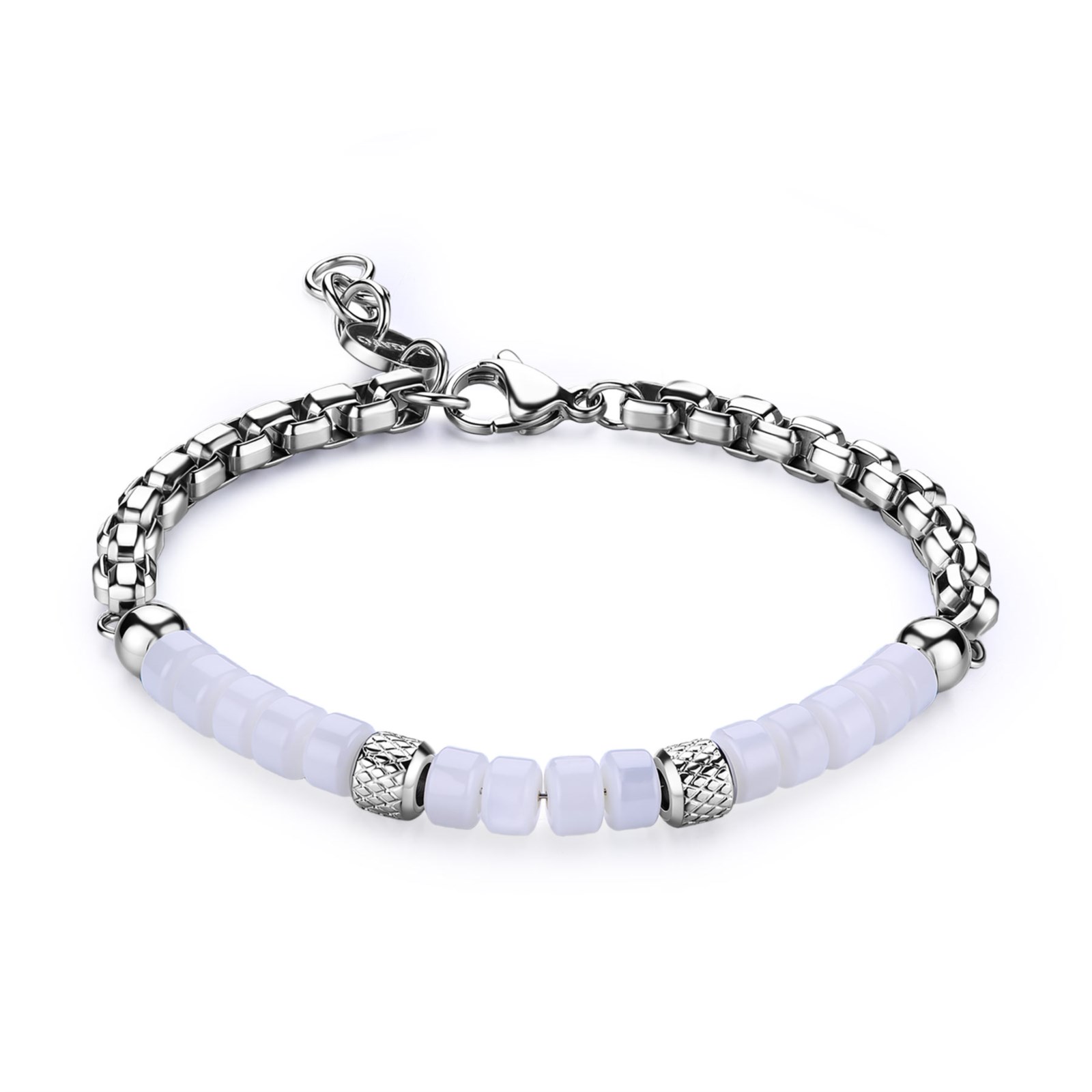 Bracciale uomo s'agapo, SRT37, collezione riot, in acciaio 316L con elementi in madreperla, misura 22cm