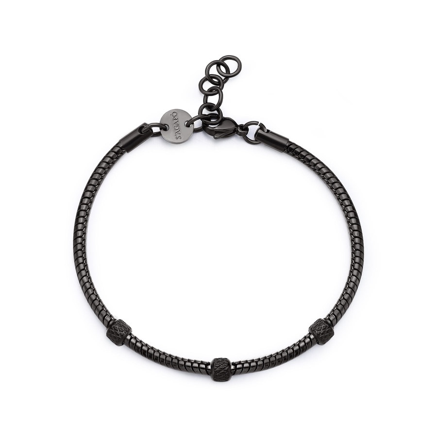Bracciale uomo sagapò, SRP84, collezione ripple, in acciaio 316L con finitura pvd colore rutenio e dettagli in finitura pvd colore nero. lunghezza 21cm.
