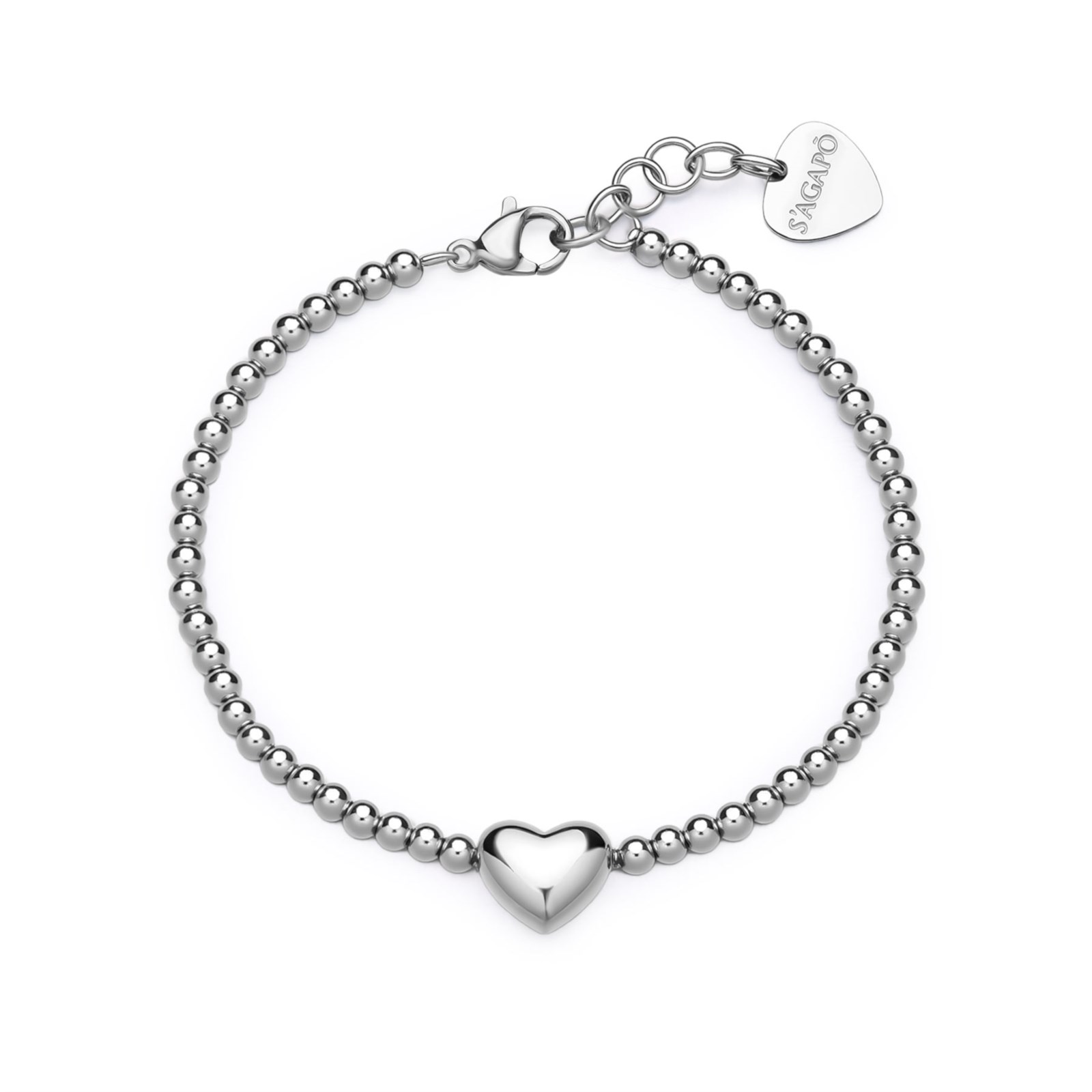 Bracciale donna sagapò, SSE39, collezione stellar, in acciaio 316L con sfere e centrale a cuore. lunghezza di 18, 5cm