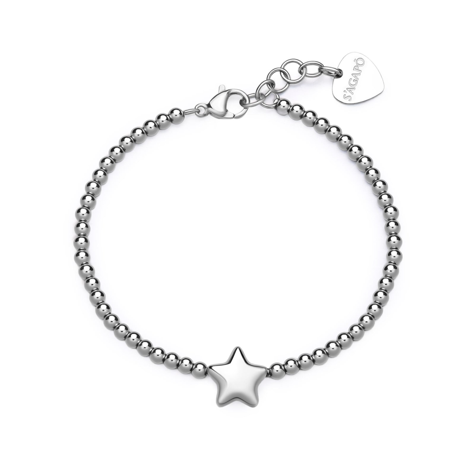 Bracciale donna sagapò, SSE43, collezione stellar, in acciaio 316L con sfere e stella centrale. lunghezza 18, 5cm