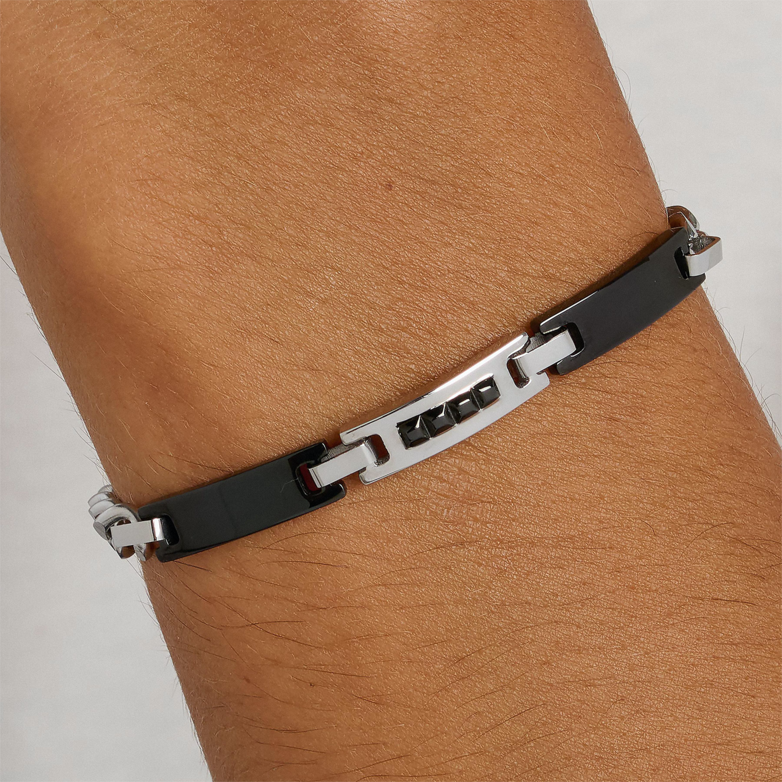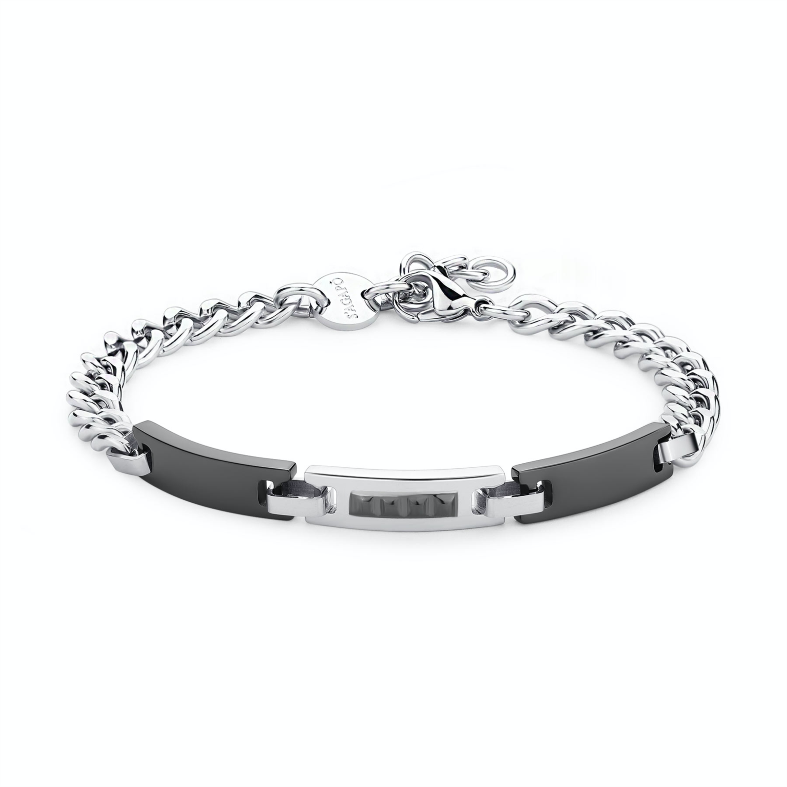 Bracciale uomo sagapò, STI12, collezione titan, in acciaio 316L e centrale in finitura pvd colore rutenio. lunghezza 21cm