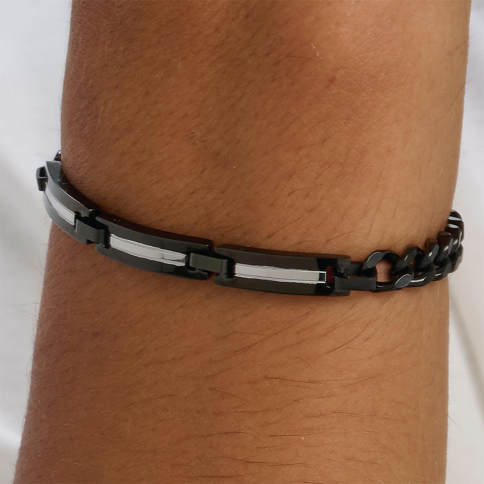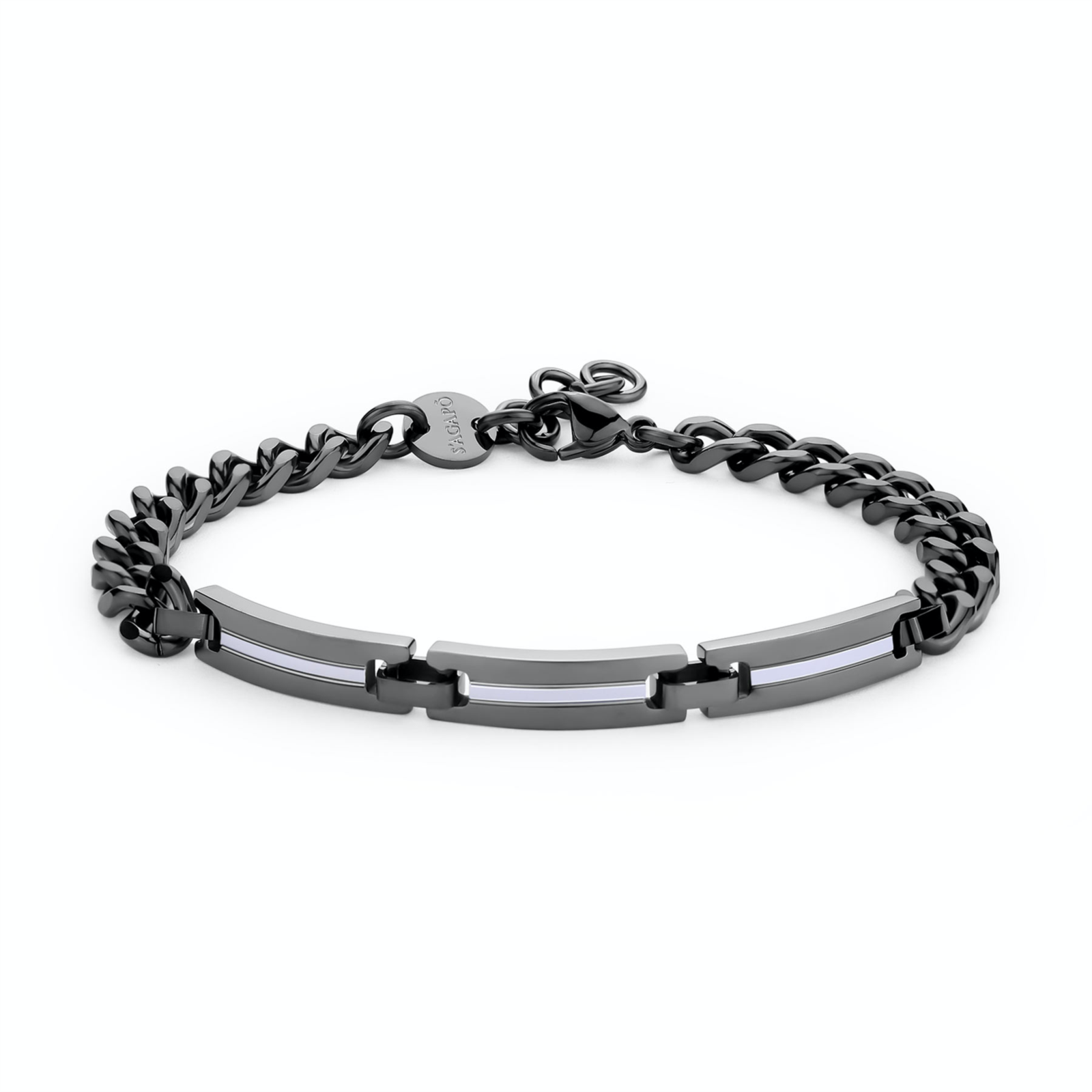 Bracciale uomo sagapò, STI13, collezione titan, in acciaio 316L e finitura pvd colore rutenio. lunghezza 21cm