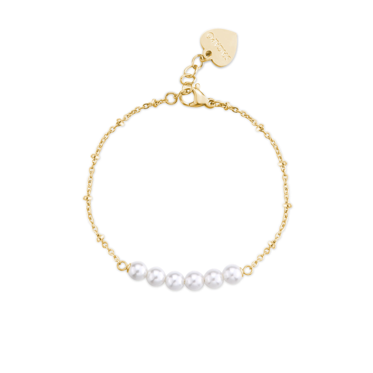 Bracciale donna s'agapo, SWI20, collezione wisdom, in acciaio 316L con finitura in pvd oro 14K e perle centrali, lunghezza 18, 5cm