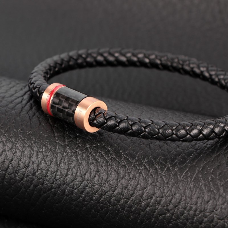 Bracciale uomo sector, Szv47, collezione bandy, ; in acciaio rosè, fibra di carbonio e pelle
