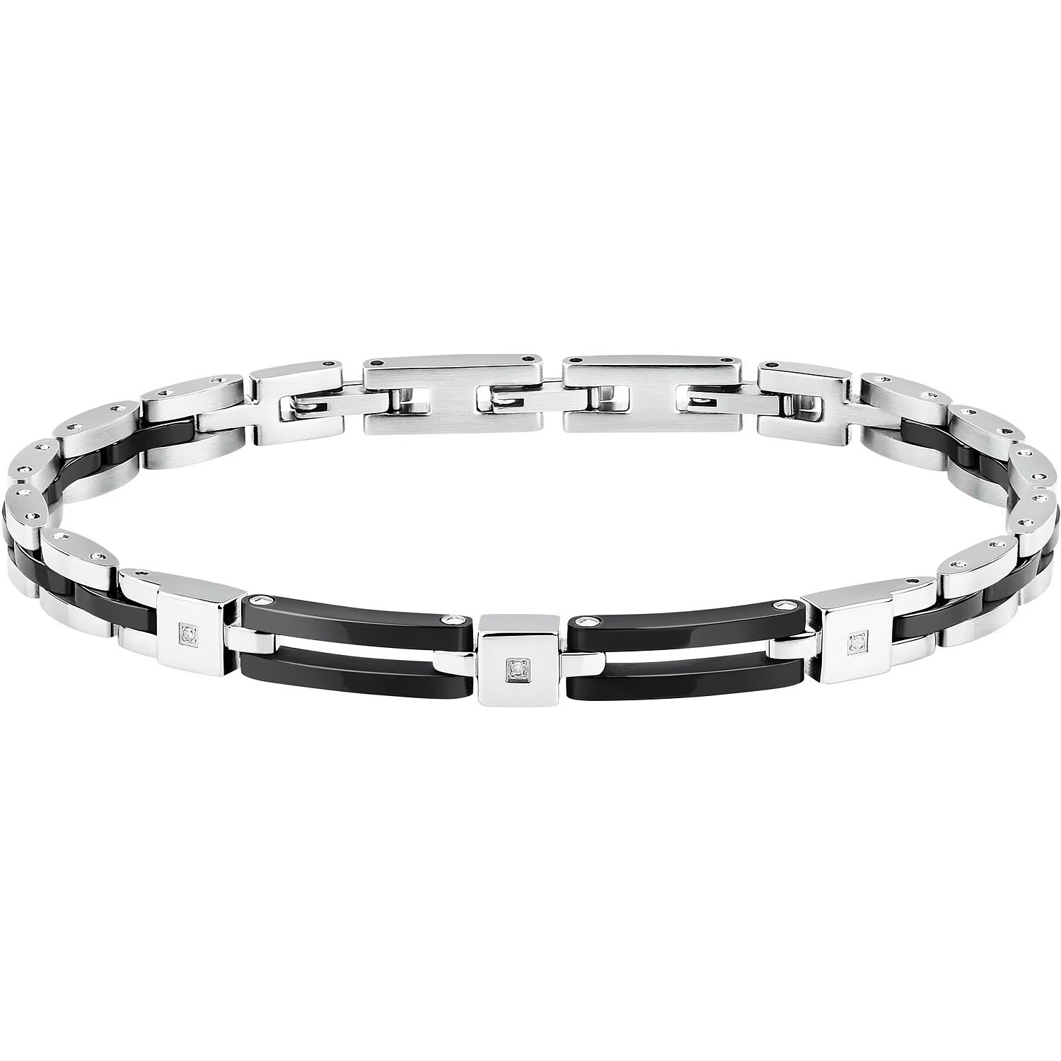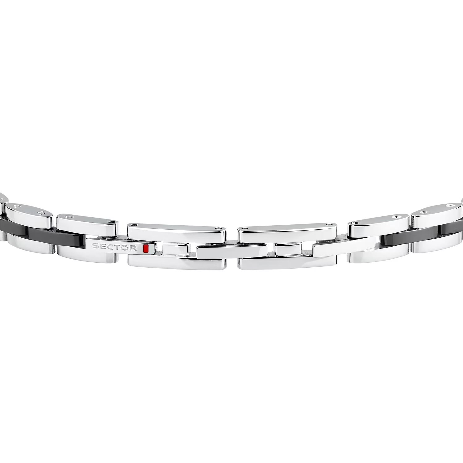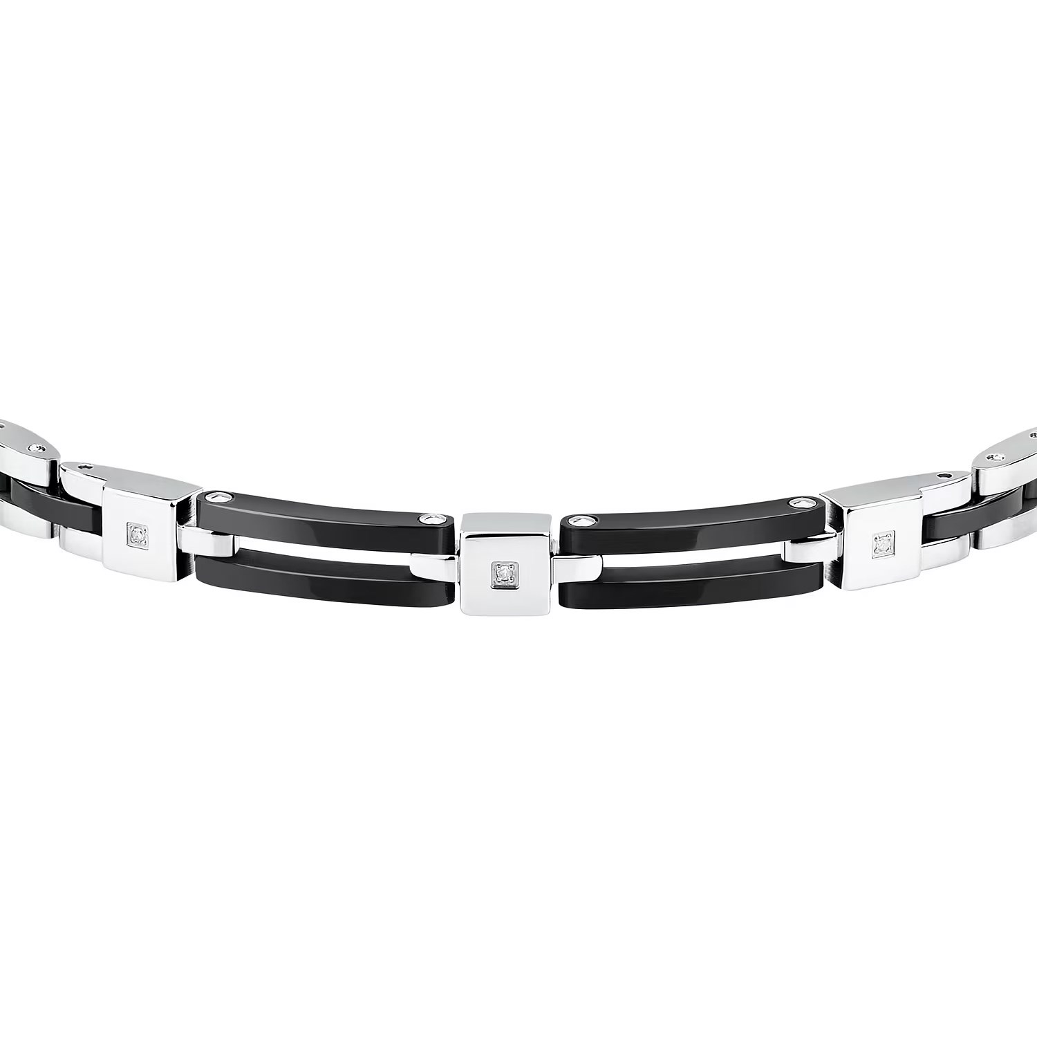 Bracciale uomo sector, SAFR44, collezione ceramic, in acciaio con ceramica nera e diamanti naturali, misura 22cm