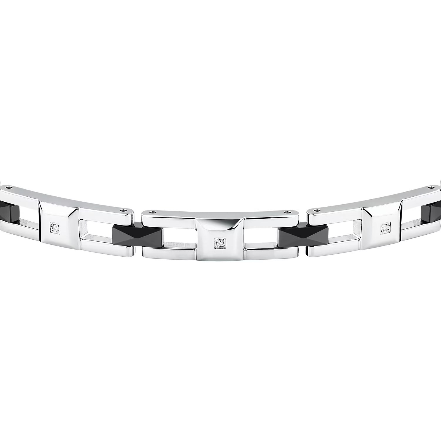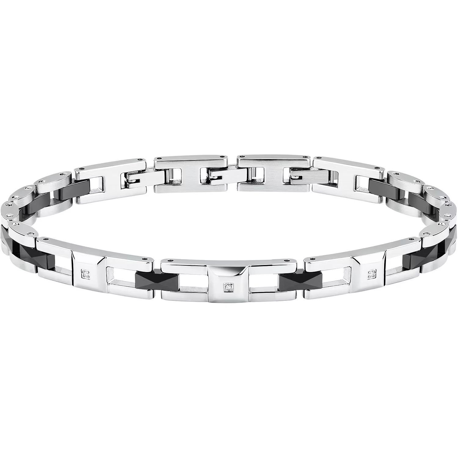Bracciale uomo sector, SAFR45, collezione ceramic, in acciaio e ceramica nera con diamanti naturali, misura 22cm