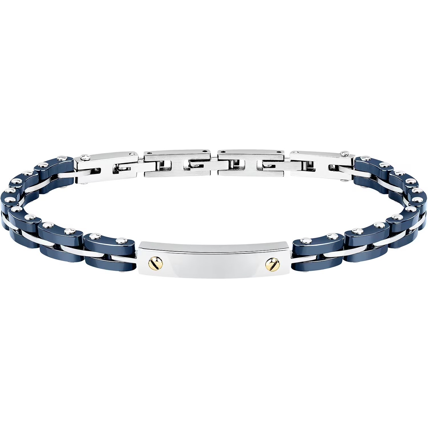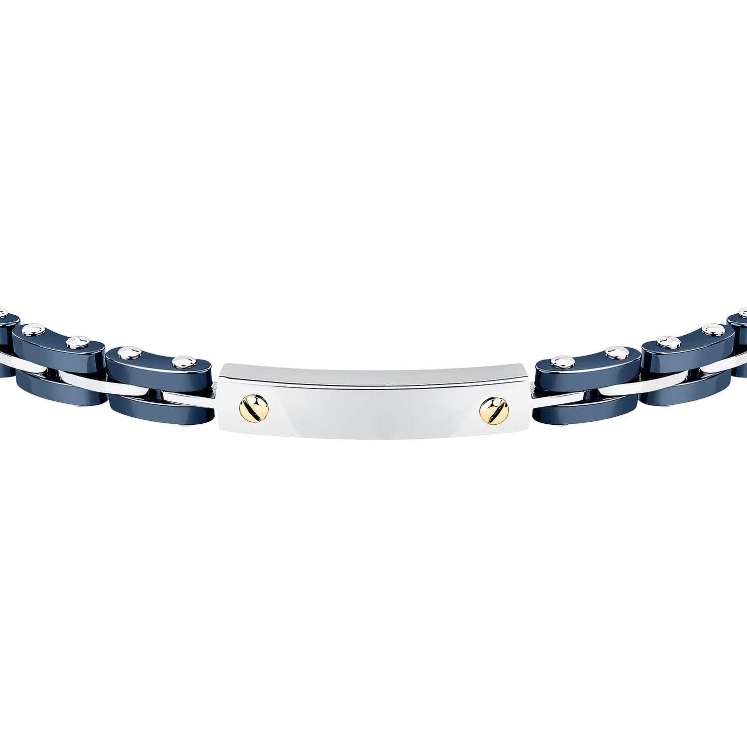 Bracciale uomo sector, SAFR55, collezione ceramic, in acciaio e ceramica blu, misura 21, 5cm