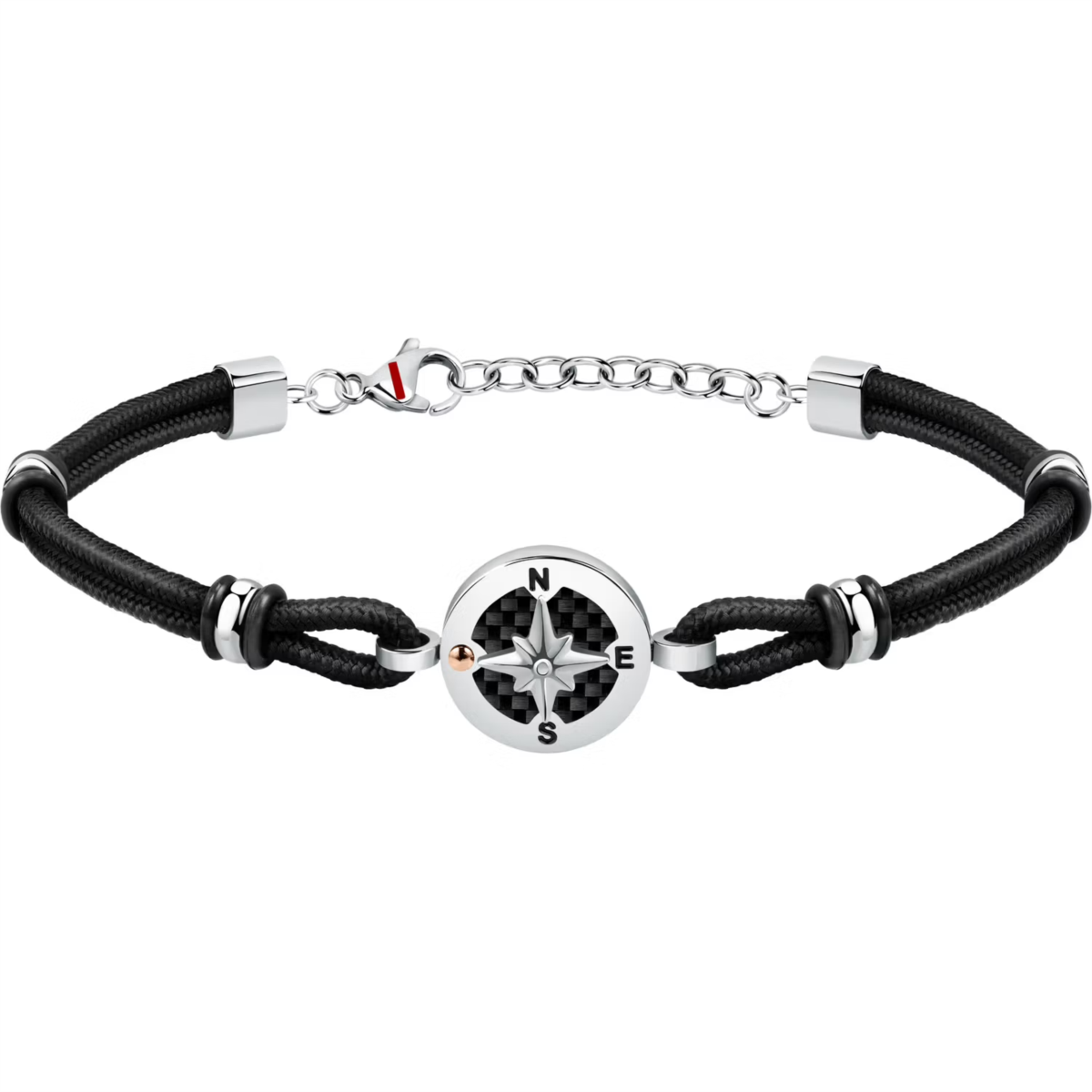 Bracciale uomo sector, SAGJ31, collezione marine, in acciaio e cordino nero, misura 19cm+3cm