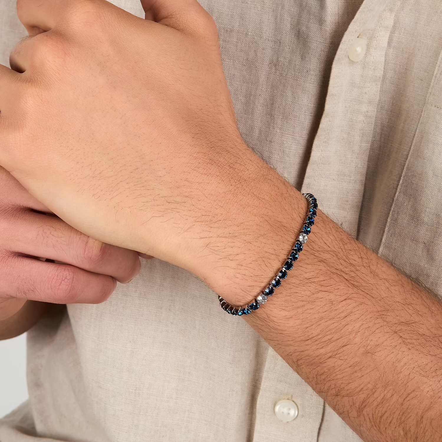 Bracciale uomo tennis, SANN53, collezione tennis, in acciaio e zirconi, misura 19cm