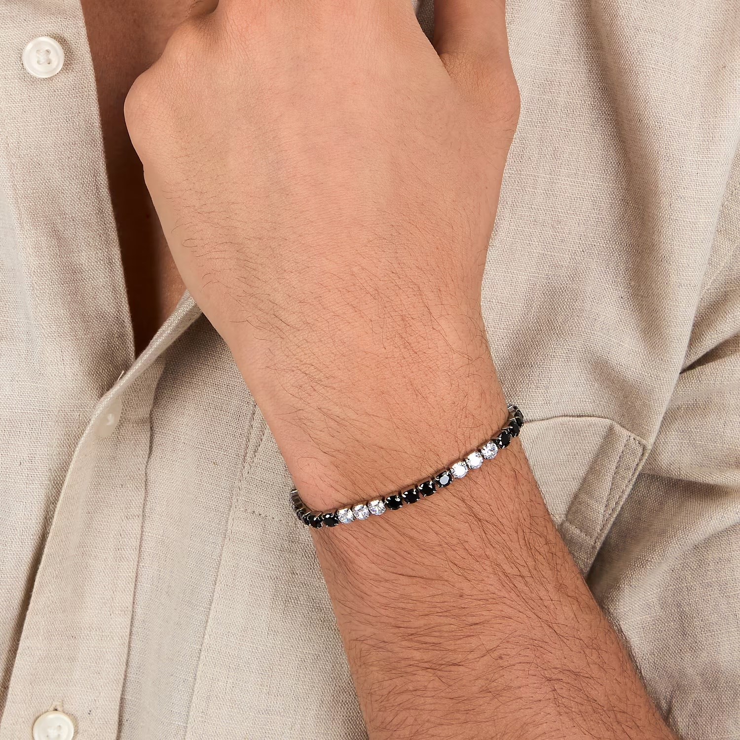Bracciale uomo sector, SANN55, collezione tennis, in acciaio e zirconi, misura 19cm