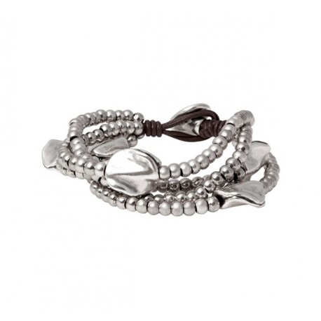 Bracciale donna uno de 50 realizzato a mano, PUL0854MTLMAR0M, collezione A beautiful mind, novità, con diversi fili di pelle con perline e chiusura in lega di metallo argentato.Perimetro Max: 16, 50 cm