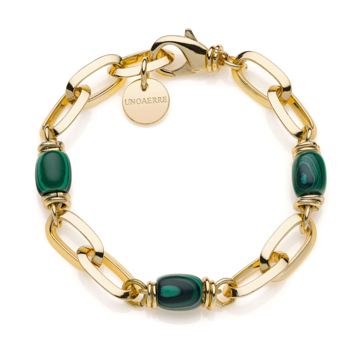 Bracciale donna unoaerre, 2199, collezione classica, in bronzo dorato e malachite verde, lunghezza 20cm