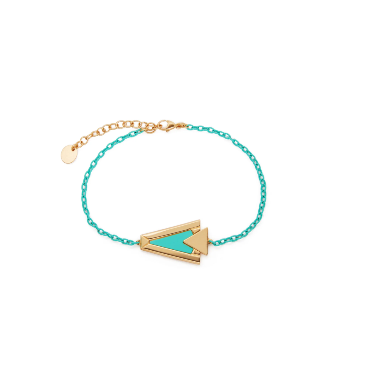 Bracciale donna valentina ferragni, DVF-BR-06, collezione febe, in argento 925 placcato oro giallo e bagno di colore verde acqua, lunghezza 18, 5cm