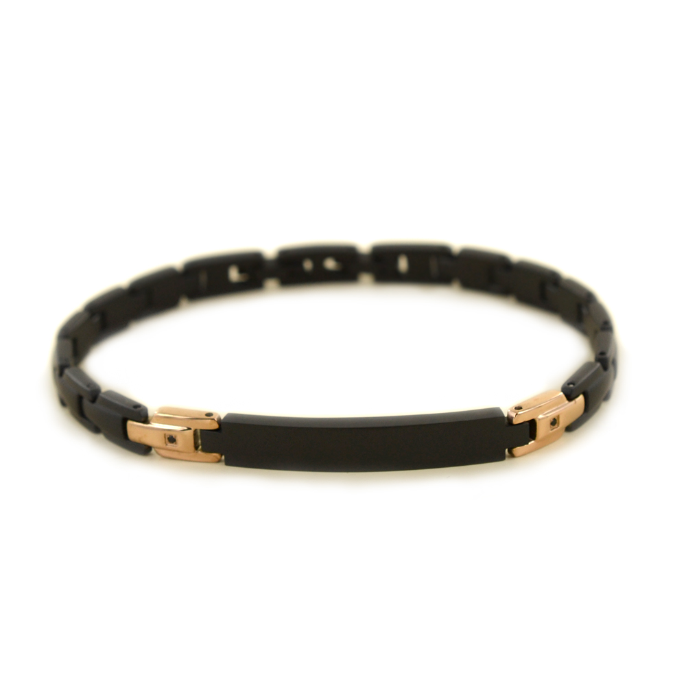Bracciale uomo zancan, UHB075, collezione hi teck, in acciaio nero/acciaio rosa, lunghezza 21cm