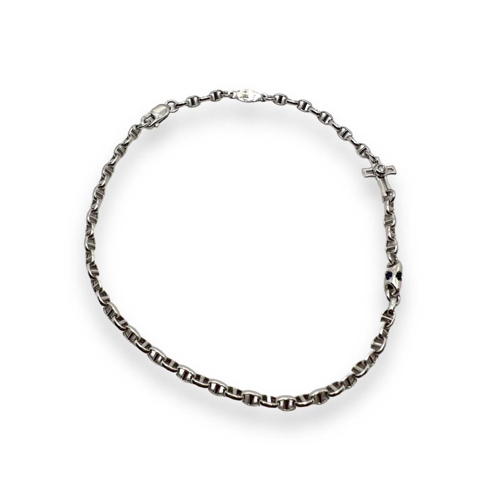 Bracciale uomo zancan, EB902B-ZB, collezione insignia gold, in Oro Bianco 18 kt con simbolo croce con diamanti taglio brillante ambo i lati 0, 03 ct e barilotto con 4 zaffiri 0, 08 ct, di peso 2, 8 g e lunghezza 20 cm.