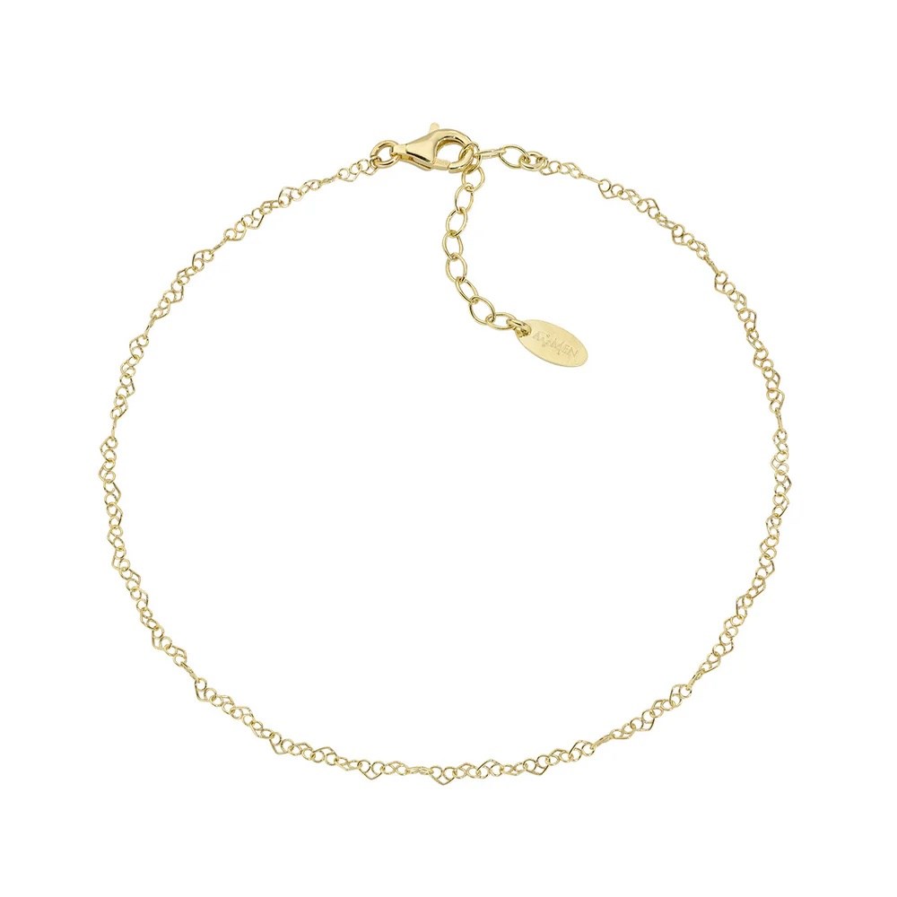 Cavigliera donna amen, CAVCACUG, collezione cavigliere, in argento 925 dorato formata da maglie a forma di cuore.