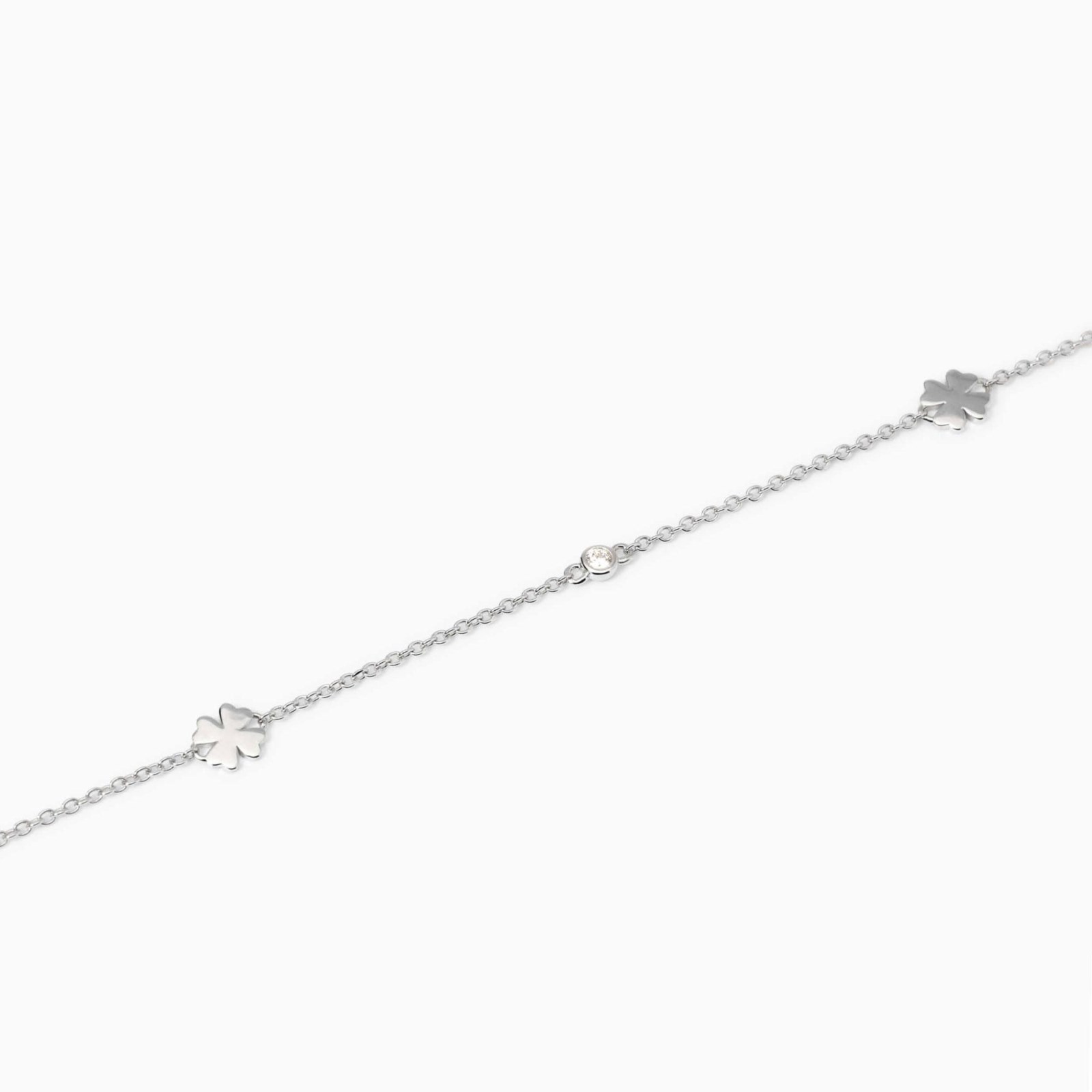 Cavigliera donna mabina, 534064, collezione argento donna, in argento con catena forzatina, zirconi e quadrifogli. • Dimensione catena: 1, 4 mm • Dimensione quadrifogli: 5, 3x5, 3 mm • Diametro zirconi: 2 mm • Misura regolabile dalla 23 alla 26 cm