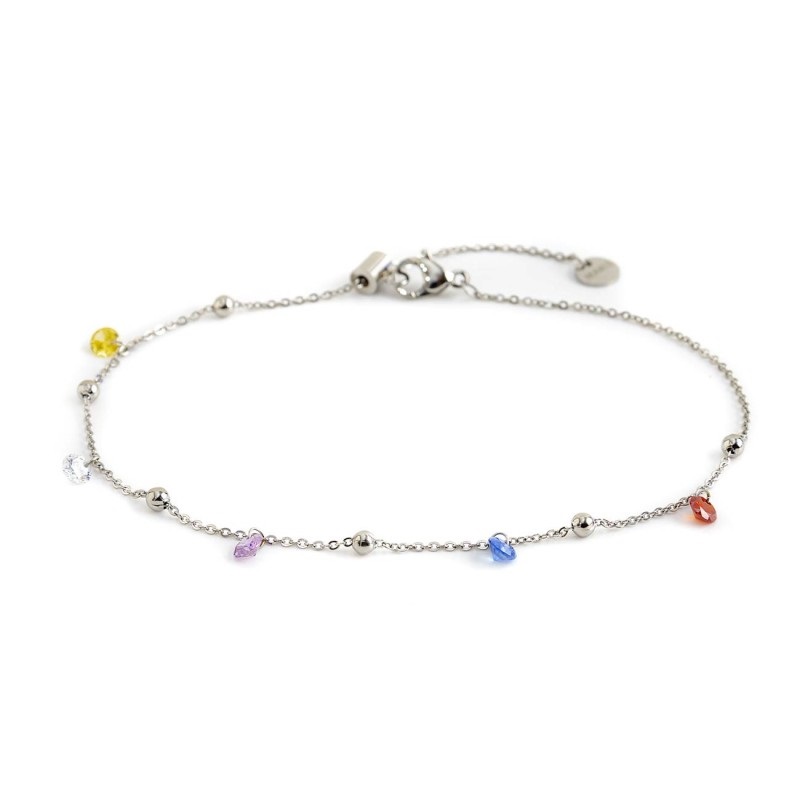Cavigliera donna marlù, 20CV044G-RGB, collezione cavigliere, in acciaio con catena sfere e con cubic zirconia colorati alternati.