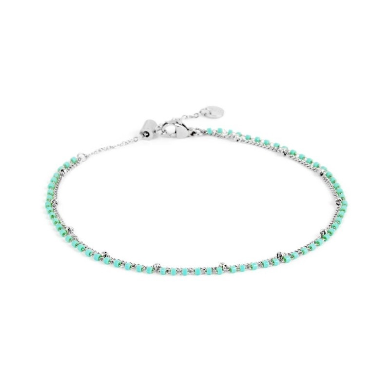 Cavigliera donna marlù, 20CV053-T, collezione cavigliere, in acciaio con doppia catena: la prima è una catena a grumetta con altezza 1, 40 e con sfere.