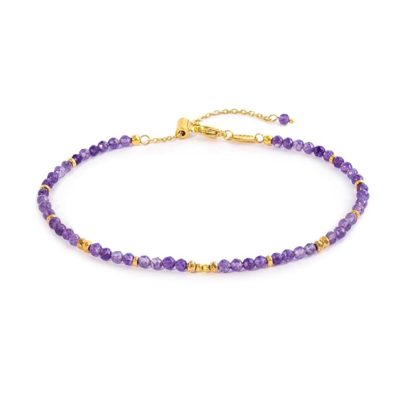 Cavigliera donna marlù, 20CV085G-P, collezione cavigliere, in acciaio dorato con agata alternata ad elementi sfaccettati in ematite in due misure.