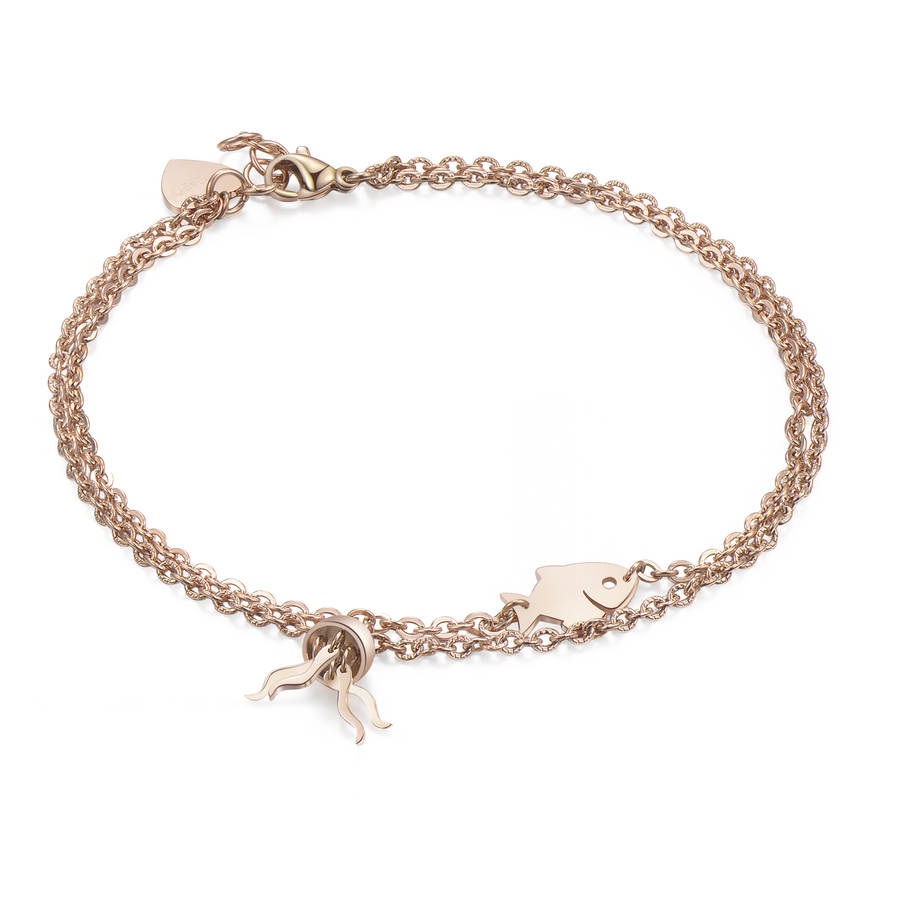 Cavigliera donna s'agapò, Sht20, collezione haiti, in acciaio rosato, pendente pesce e medusa