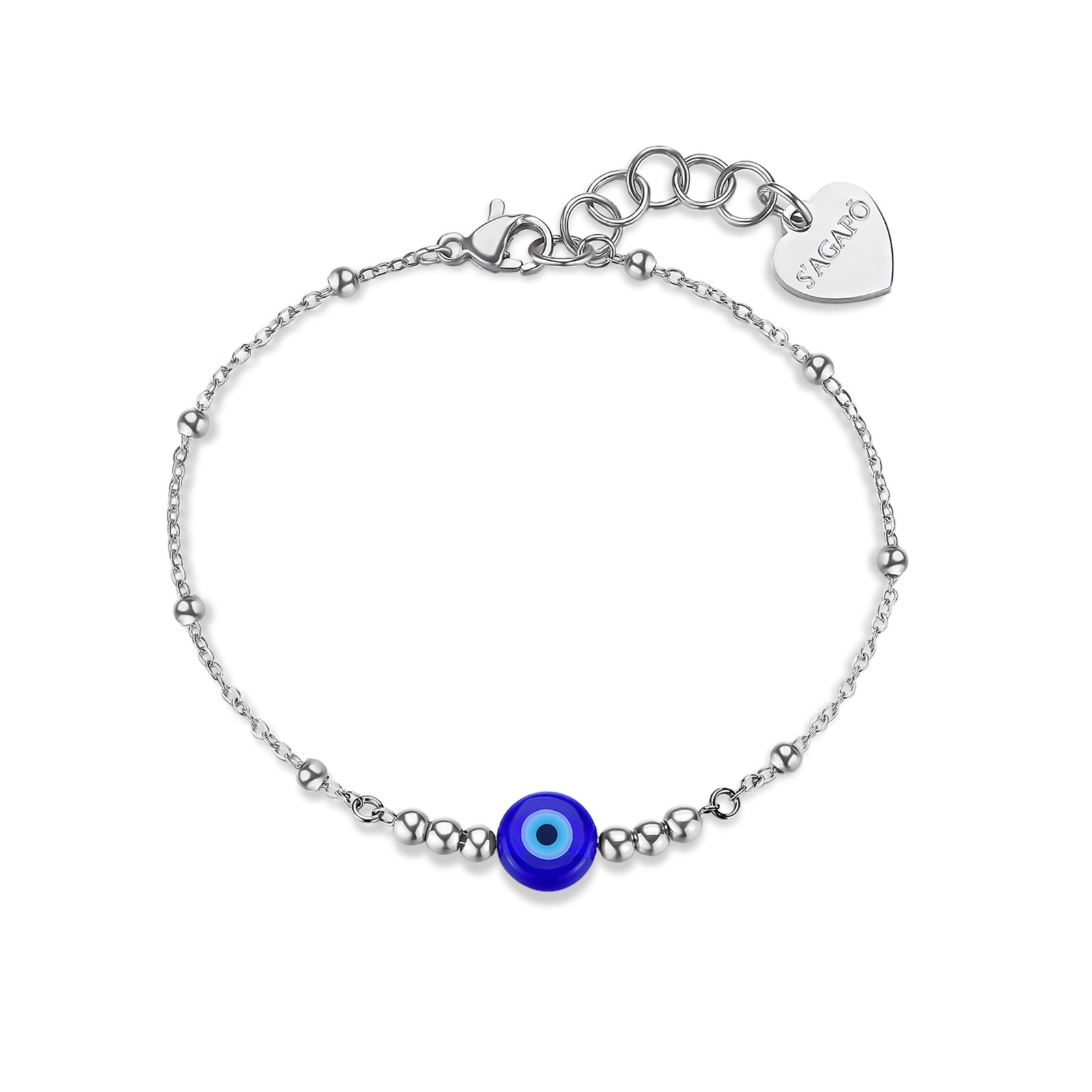 Cavigliera donna sagapò, SWH21, collezione witch, in acciaio 316L con occhio di Nazar. lunghezza 23cm