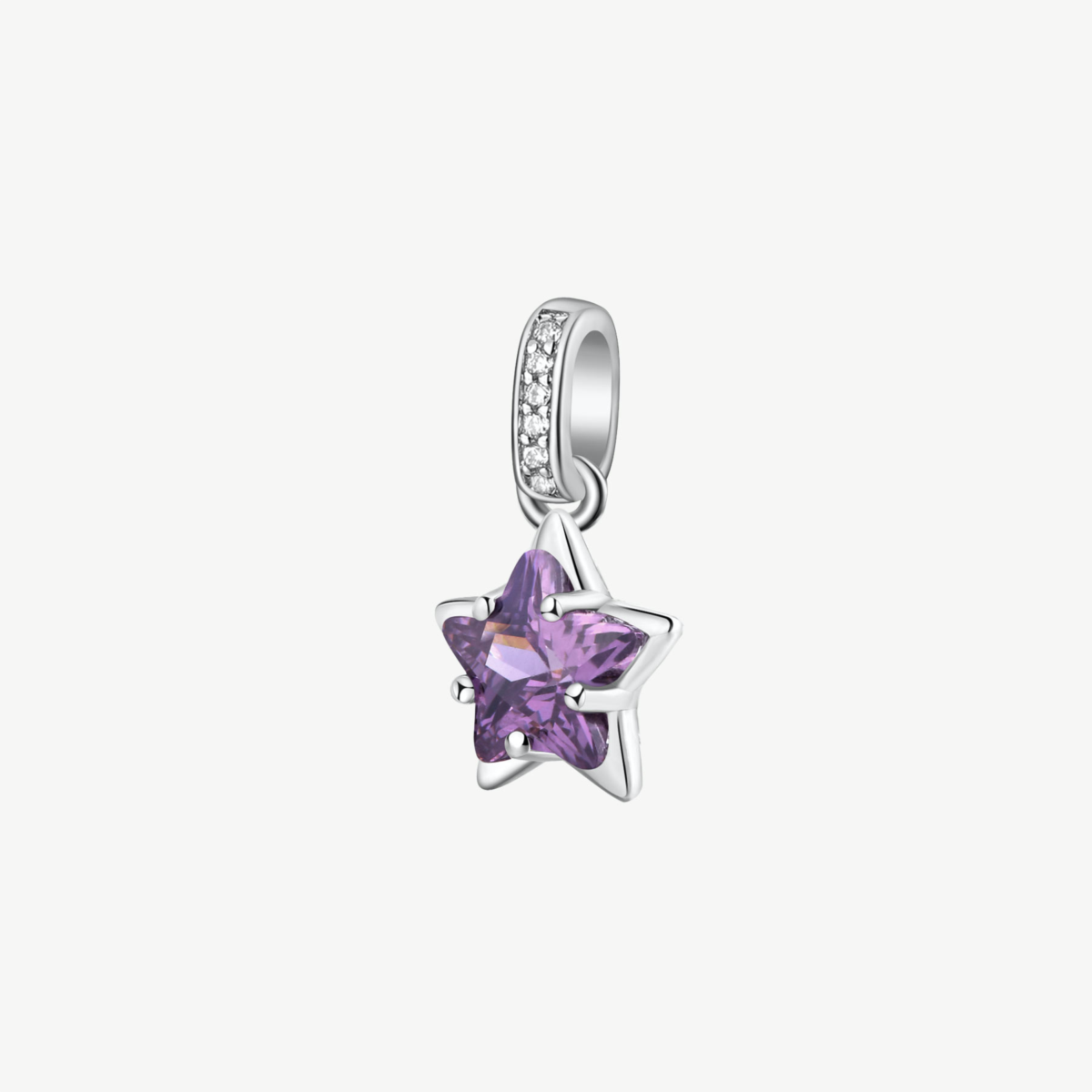 Charm donna brosway, FMP31, collezione fancy, in argento rodiato 925‰ a forma di stella con cubic zirconia chiari e colore amethyst.