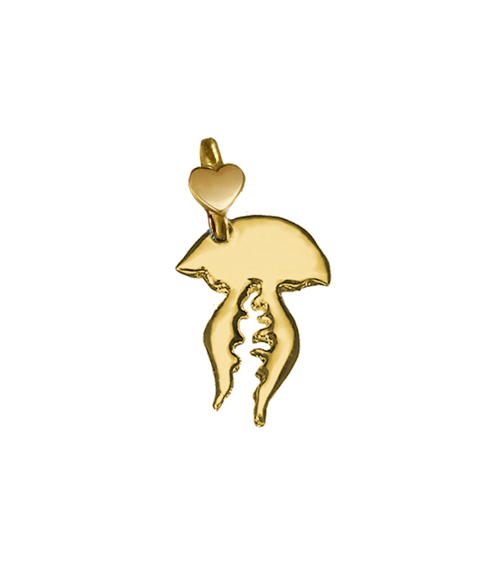 Ciondolo in oro giallo 9kt con contromaglia cuoricino in oro giallo 9kt soggetto medusa “Evanescente…trasparente…chi sei?”.