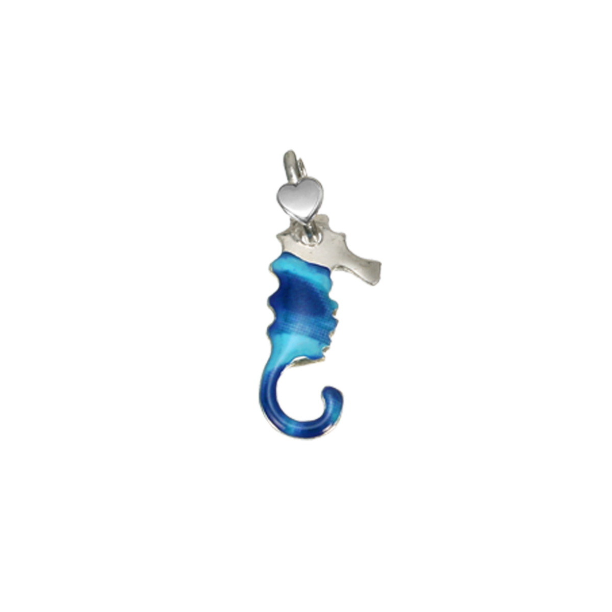 Ciondolo in argento 925 con contromaglia cuoricino in argento 925 e smalto della collezione animaletti soggetto ippocampo "sono pronto all'avventura"