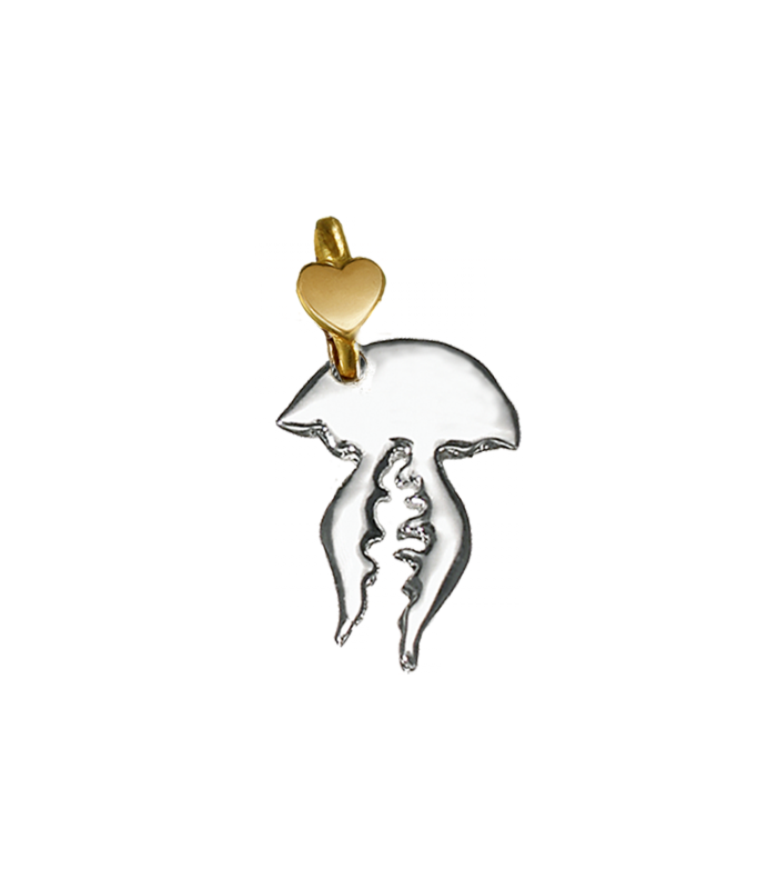 Ciondolo in argento 925 con contromaglia cuoricino oro giallo 9kt, soggetto medusa “Evanescente…trasparente…chi sei?”.