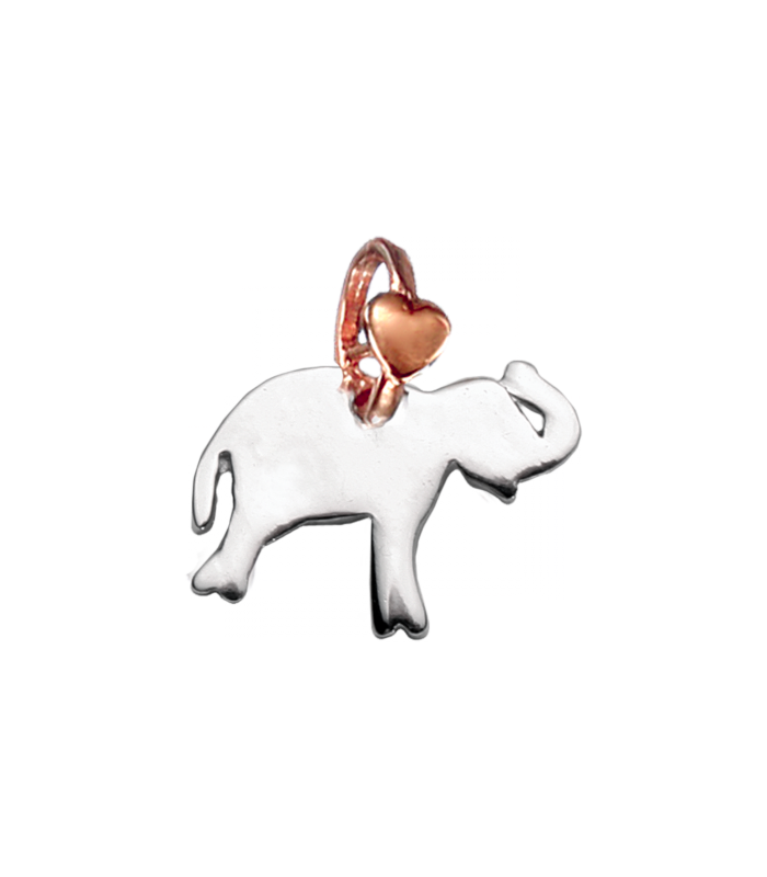 Ciondolo in argento 925 con contromaglia cuoricino in oro rosa 9kt della collezione animaletti soggetto elefante “Infinitamente grande”