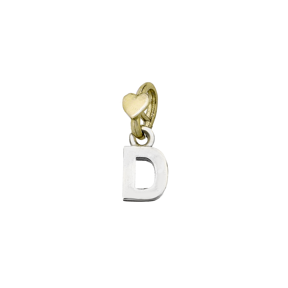 Ciondolo in argento 925 con contromaglia cuoricino in oro giallo 9kt della collezione lettere