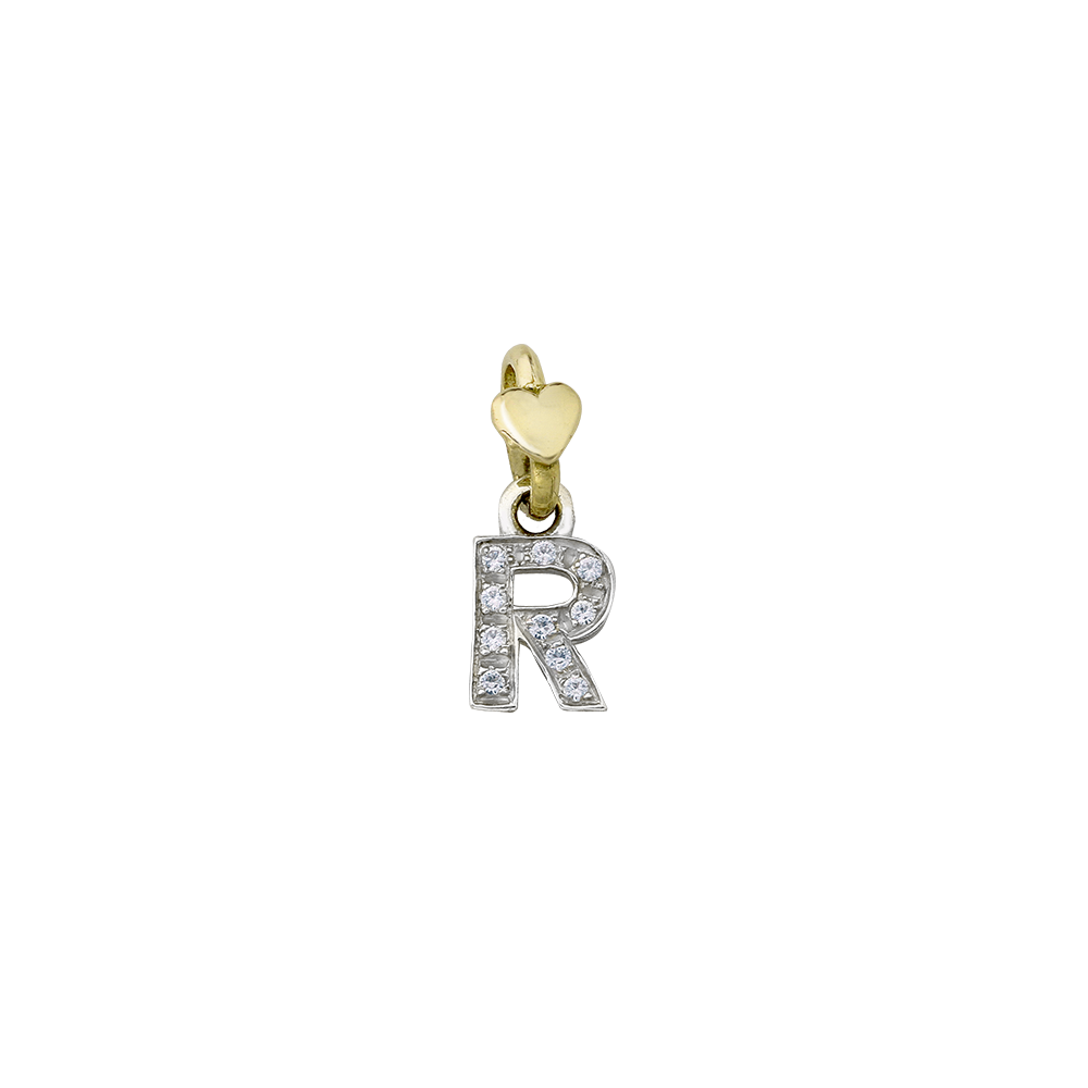 Ciondolo in argento 925 e zirconi con contromaglia cuoricino in oro giallo 9kt della collezione lettere