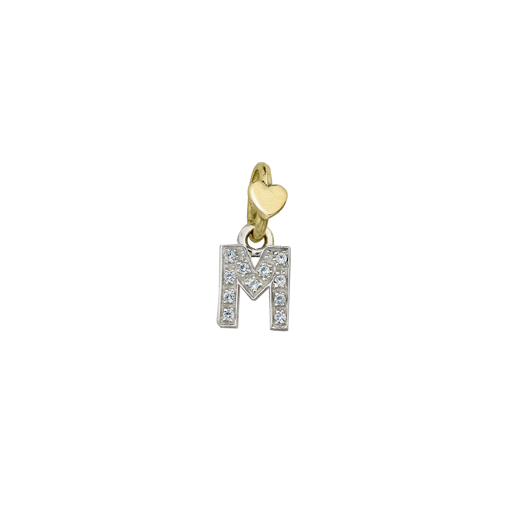 Ciondolo in argento 925 e zirconi con contromaglia cuoricino in oro giallo 9kt della collezione lettere
